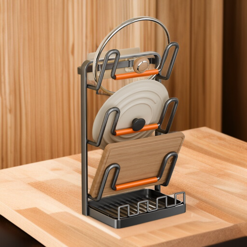 لوح تقطيع متعدد الاستخدامات للمطبخ ورف تخزين لأغطية القدور